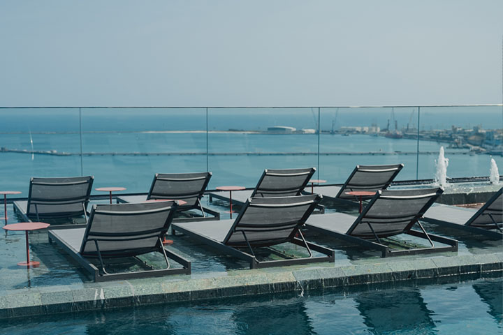 Localizado na cobertura do Hotel, o Bar da Piscina dispõe da mais bela vista da praia do Mucuripe. Aproveite um menu variado de drinks e de petiscos em um ambiente ideal para relaxar.